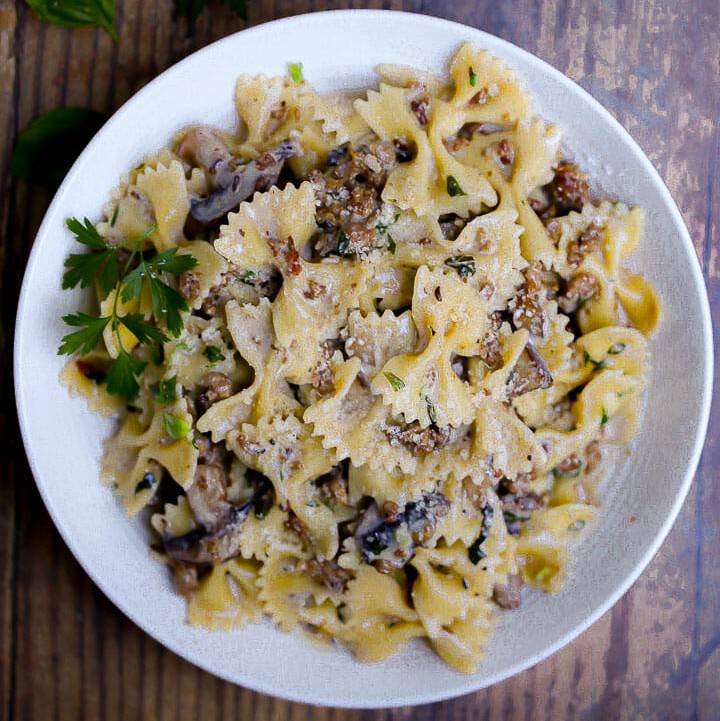 Creamy Farfalle Pasta with Mushrooms and Sausage